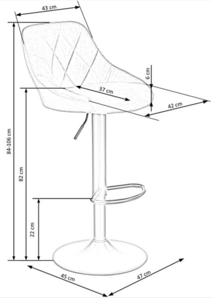 Designová barová židle H-101 je čalouněná sametovou látkou v módní černé barvě, vyznačující se extrémně jemným fleecem, který efektně odráží světlo a mírně mění svůj odstín v závislosti na uspořádání chloupků. Sametová látka je navíc měkká a příjemná na dotek. Podnož je vyrobena z oceli s černou práškovou barvou. Tato barevná kombinace dokonale zapadá do současných trendů interiérového designu v loftovém stylu. Barová židle H-101 má také pohodlné opěradlo zdobené prošíváním, které dodává kouzlo. Ideální pro moderní aranžmá. Výšku sedu je možno si snadno nastavit. Vyžaduje vlastní montáž.