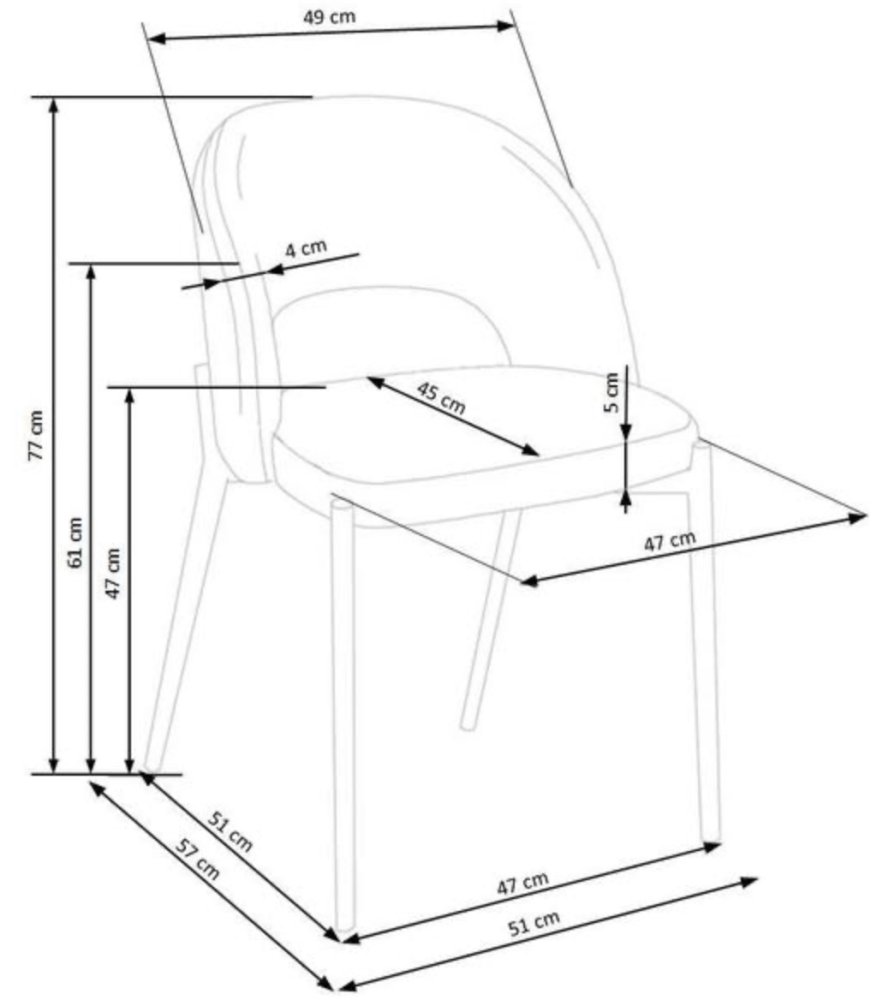 Židle K455 v nadčasových barvách a s klenutým opěradlem se bude skvěle hodit do moderního zařízení interiéru. Krásně se bude hodit k dřevěnému nebo mramorovému stolu a zajistí pohodlné posezení při rodinných večeřích. Židle K455 je čalouněná sametovou látkou v módní šedé barvě. Kovové nohy s práškovým nástřikem dodávají nábytku stabilitu a jsou odolné proti mechanickému poškození a korozi. Čalouněná židle je návrhem do jídelny a obývacího pokoje v glamour a loft stylu. Dodáváno v demontovaném stavu.