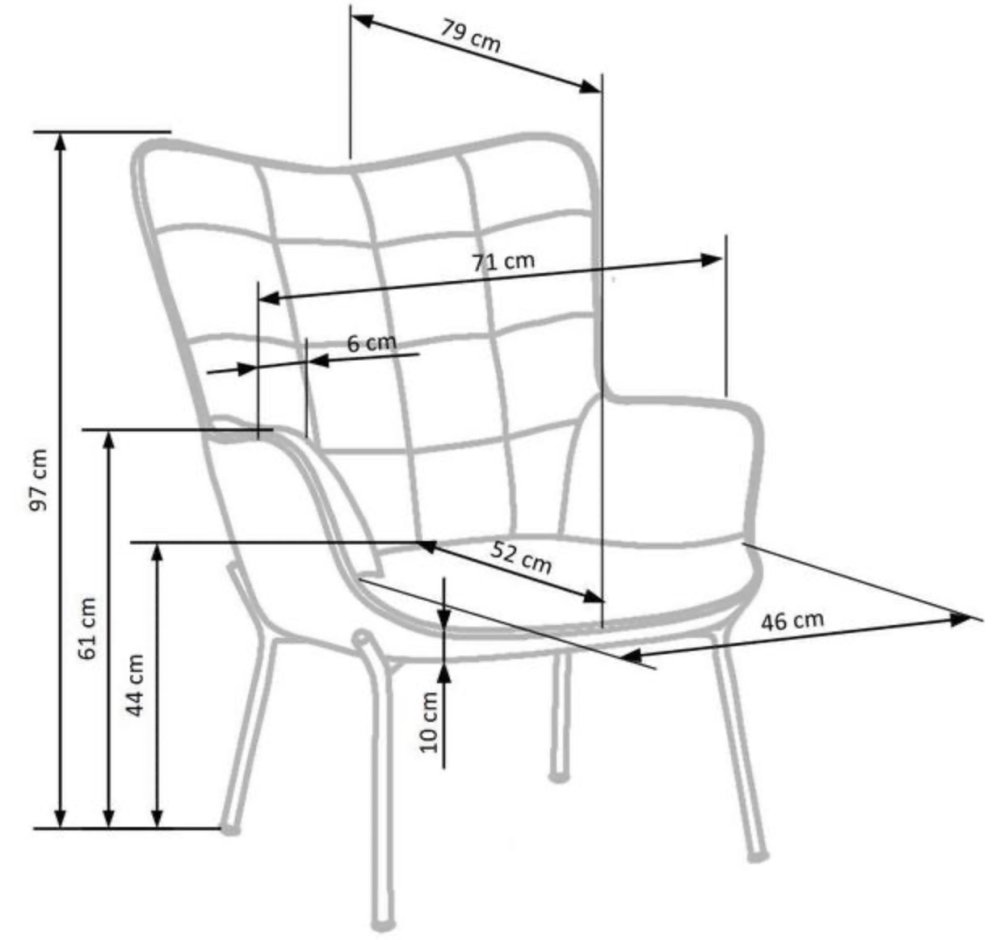 Křeslo CASTEL je moderní kus nábytku zajímavých tvarů. Potěší svou estetikou, která odkazuje na oblíbená "ušatá" křesla. Sedák a opěradlo vytvářejí útulný tvar, který vás vybízí k sezení a relaxaci nebo dokonce ke krátkému spánku. Křeslo je upevněno na štíhlých nohách, které dodávají konstrukci lehkost. Křeslo je čalouněné látkou v šedé barvě. Na opěradle je decentní prošívání. Šedé čalounění v kombinaci s ocelovými nohami s černým práškovým nástřikem tvoří univerzální kus nábytku, který se snadno přizpůsobí mnoha aranžmá. Křeslo skvěle zapadne do skandinávských, moderních i vintage interiérů. Vyžaduje jednoduchou montáž.