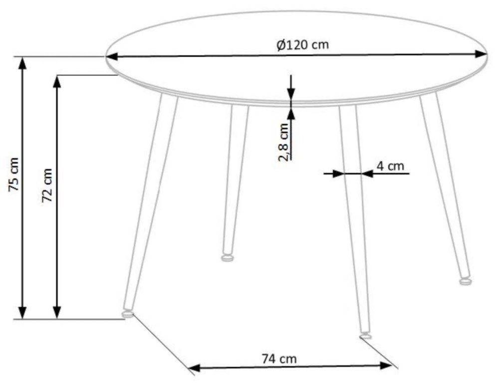 Stůl EMBOS je elegantního designu s kulatou deskou o průměru 120 cm. Prostorná deska stolu je vyrobena z černě lakované MDF desky s viditelnou přírodní kresbou dřeva. Urostlé nohy, které se směrem ke dnu mírně zužují, jsou vyrobeny z černé práškově lakované oceli, zatímco jejich spodní část je vyrobena ze zlaté chromované oceli, která viditelně kontrastuje s celkovým dekorem nábytku a opticky mu dodává lehkost a vzhled svěžest. Prezentovaný tvar EMBOS skvěle zapadne do moderního obývacího pokoje nebo prostoru obývacího pokoje - můžete k němu umístit libovolný počet židlí, a proto je ideálním řešením i do větších interiérů. Kromě toho, že elegantní stůl dodá interiéru vysokou estetiku, bude i praktickým nábytkem, který usnadní každodenní fungování.