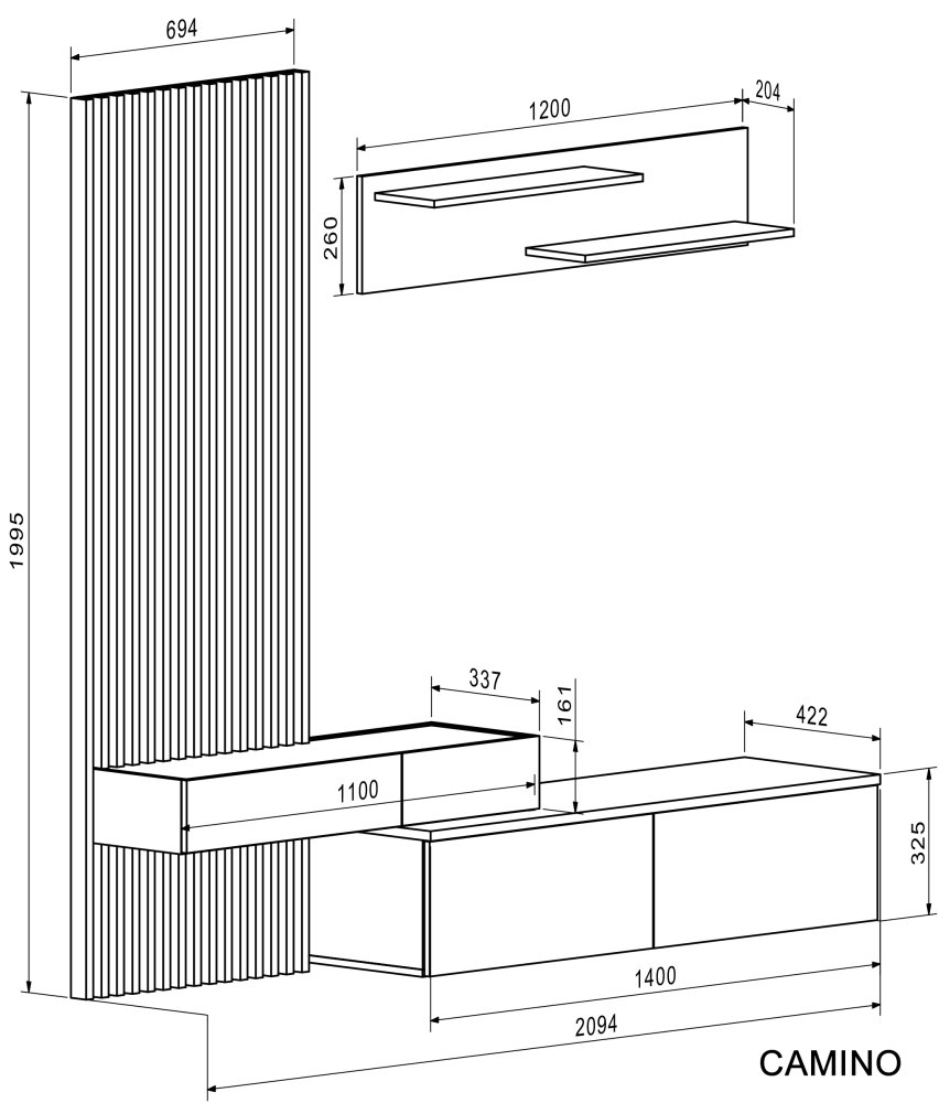 Přineste do svého obývacího pokoje nebo moderního interiéru nábytkovou sestavu Camino, která spojuje teplý dekor přírodního dřeva dąb artisan s výraznými a elegantními černými akcenty. Tento set je navržen s ohledem na nejen estetiku, ale také funkčnost — nabízí promyšlené řešení pro televizní zónu, úložný prostor a zároveň působí vzdušně i v kompaktnějších místnostech.