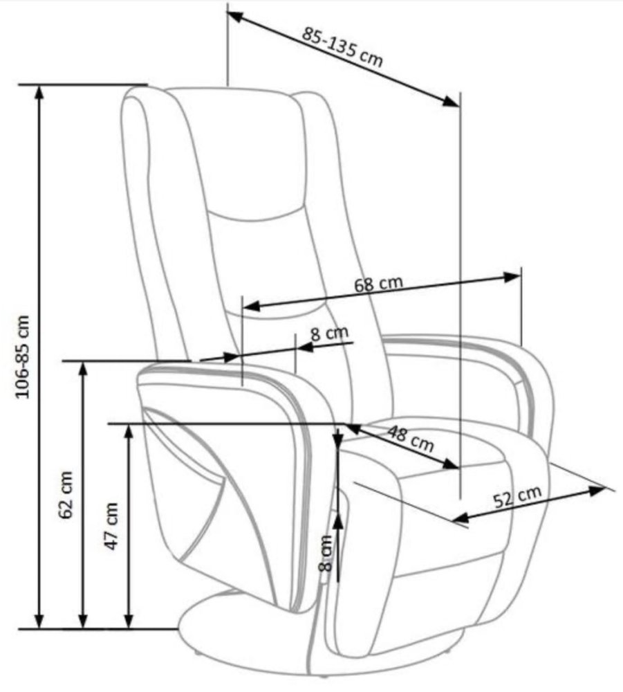 Křeslo PULSAR se vyznačuje jedinečným tvarem, který se skvěle hodí do obývacího pokoje nebo soukromé kanceláře. Ergonomický design i neobvyklá úprava jistě upoutá pozornost mnoha lidí. Stylové křeslo vám umožní pohodlně relaxovat s vaší oblíbenou knihou nebo šálkem aromatické kávy. Měkké křeslo je celočalouněné ekologickou kůží v kombinaci s PVC materiálem. Materiály použité ve výrobním procesu jsou známé svou nadprůměrnou životností a odolností vůči nečistotám – snadno se udržují v čistotě. Relaxační křeslo PULSAR je vybaveno masážní funkcí. Navíc ji lze přizpůsobit individuálním potřebám a požadavkům nastavením sklonu zádové a nožní opěrky. Určeno pro svépomocnou montáž. Nosnost 136 kg.