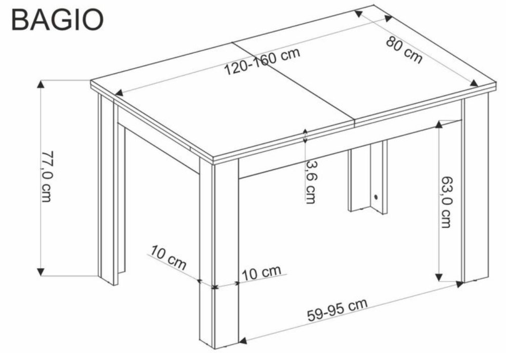 Objevte kouzlo klasické elegance se stolem BAGIO. Díky nadčasovému vzhledu, odolným materiálům a funkci rozkládání se model BAGIO hodí do každého interiéru. Kvalitní lamino znamená, že nábytek bude sloužit mnoho let a možnost rozložení desky stolu umožňuje přizpůsobit stůl měnícím se potřebám použití. Nechte klasický design stolu BAGIO decentně podtrhnout charakter vašeho domova a vytvořit atmosféru plnou rafinovaného kouzla. Dodáváno v demontovaném stavu.