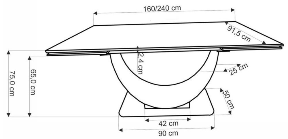 Kombinace designového základu s elegantní bílou mramorovou deskou s béžovými vsadkami dodává celku jedinečný charakter. Jednou z hlavních výhod tohoto stolu je jeho funkčnost. Možnost rozložení desky stolu umožňuje zvětšit užitnou plochu, což umožňuje pohodlně usadit více osob u stolu. To je perfektní řešení jak pro rodinné obědy, tak pro setkání s přáteli.