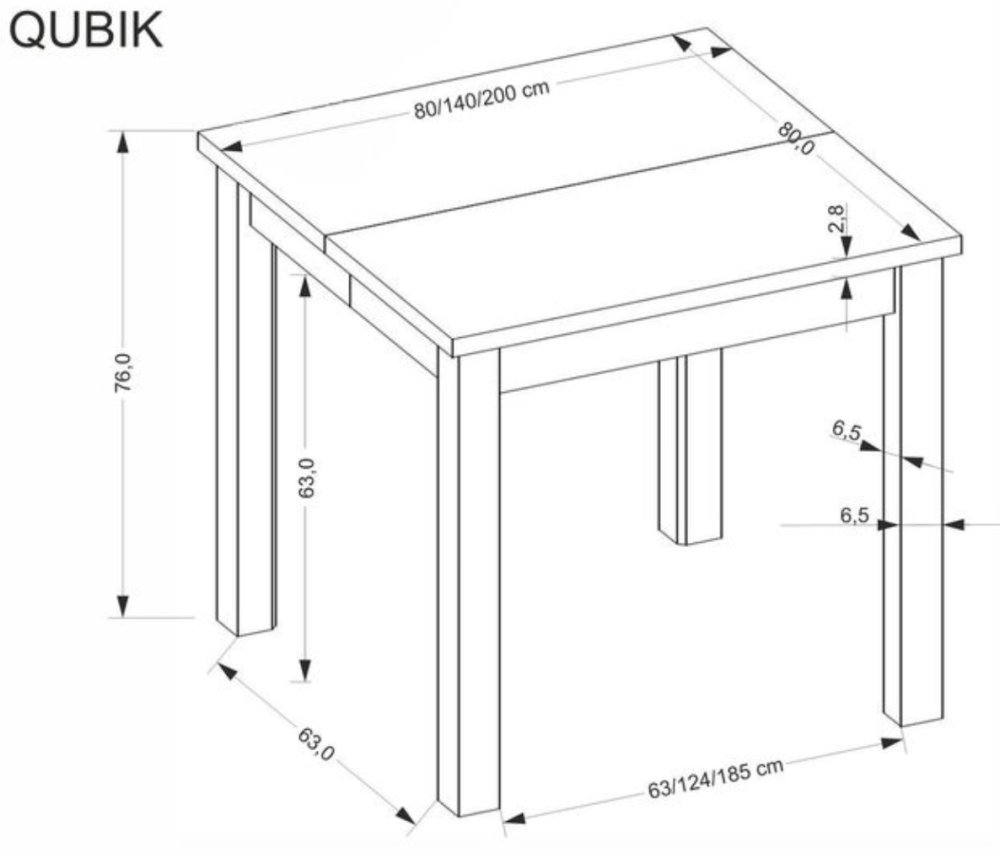 Rozkládací jídelní stůl QUBIK 80(200)x80 dub artisan/černá