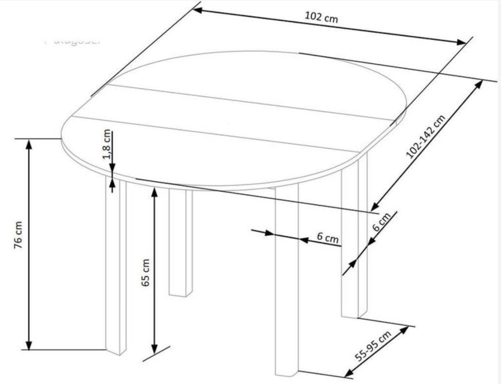 Po rozložení se stůl RINGO promění v oválný kus nábytku poskytující větší prostor pro stolování. Kulatý vršek umožňuje, aby na sebe všichni sedící viděli a bylo tak snazší mluvit. Umístěný do středu místnosti interiér opticky zvětší, dřevo zahřeje a bílá rozzáří a osvěží váš obývací pokoj nebo jídelnu. Stolová deska RINGO je vyrobena z dýhované nábytkové desky v provedení dub craft. Čtyři nohy z nábytkové desky bílé barvy poskytují stabilní oporu pro desku stolu. Stůl do jídelny a obývacího pokoje je kus nábytku, bez kterého se neobejdete. Je důležité vybrat model esteticky vyrobený a pohodlný, protože jen tak udržíme členy domácnosti v používání déle.